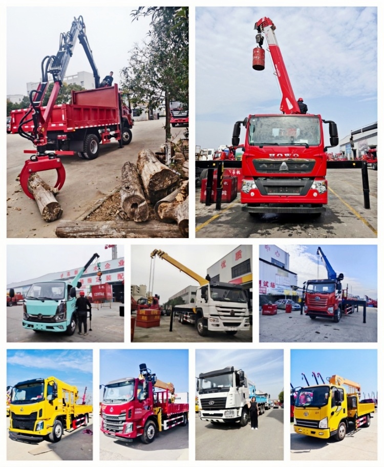 随车起重卡车可装载各类抓辅具,如夹木抓斗、吊篮、 夹砖夹具、钻具